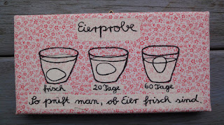 Aufträge mit Stoff- und Formatwunsch nehmen wir jederzeit entgegen. Die "Eierprobe" haben wir selbst ausprobiert, aber nicht ausgedacht, sie stammt aus einem Schulkochbuch aus den 50er Jahren.